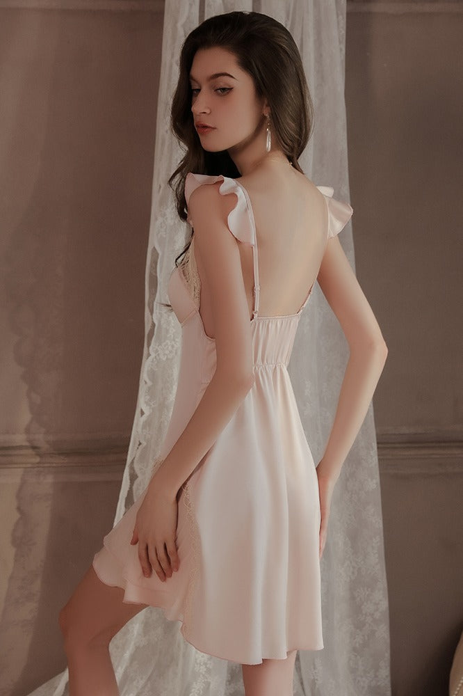 Elevate your intimate wardrobe with this sophisticated two-piece set designed for the discerning woman. The nightgown features a flattering A-line silhouette that drapes elegantly, while the deep V-neckline and delicate satin straps create an alluring focal point. The backless design adds an unexpected touch of drama and sensuality.