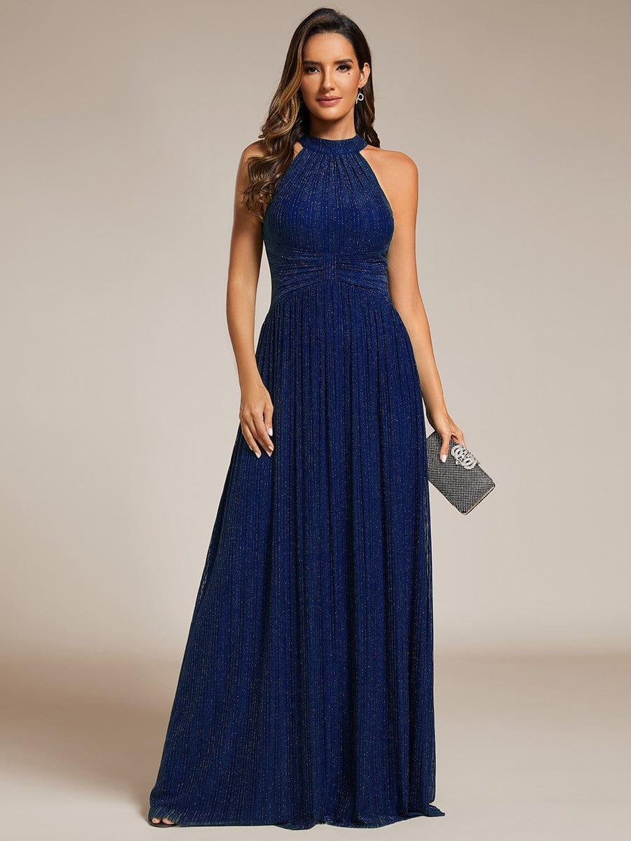 A-Line Empire-Waist Halter Neck Pleated Sleeveless Glitter Formal Evening Dress
