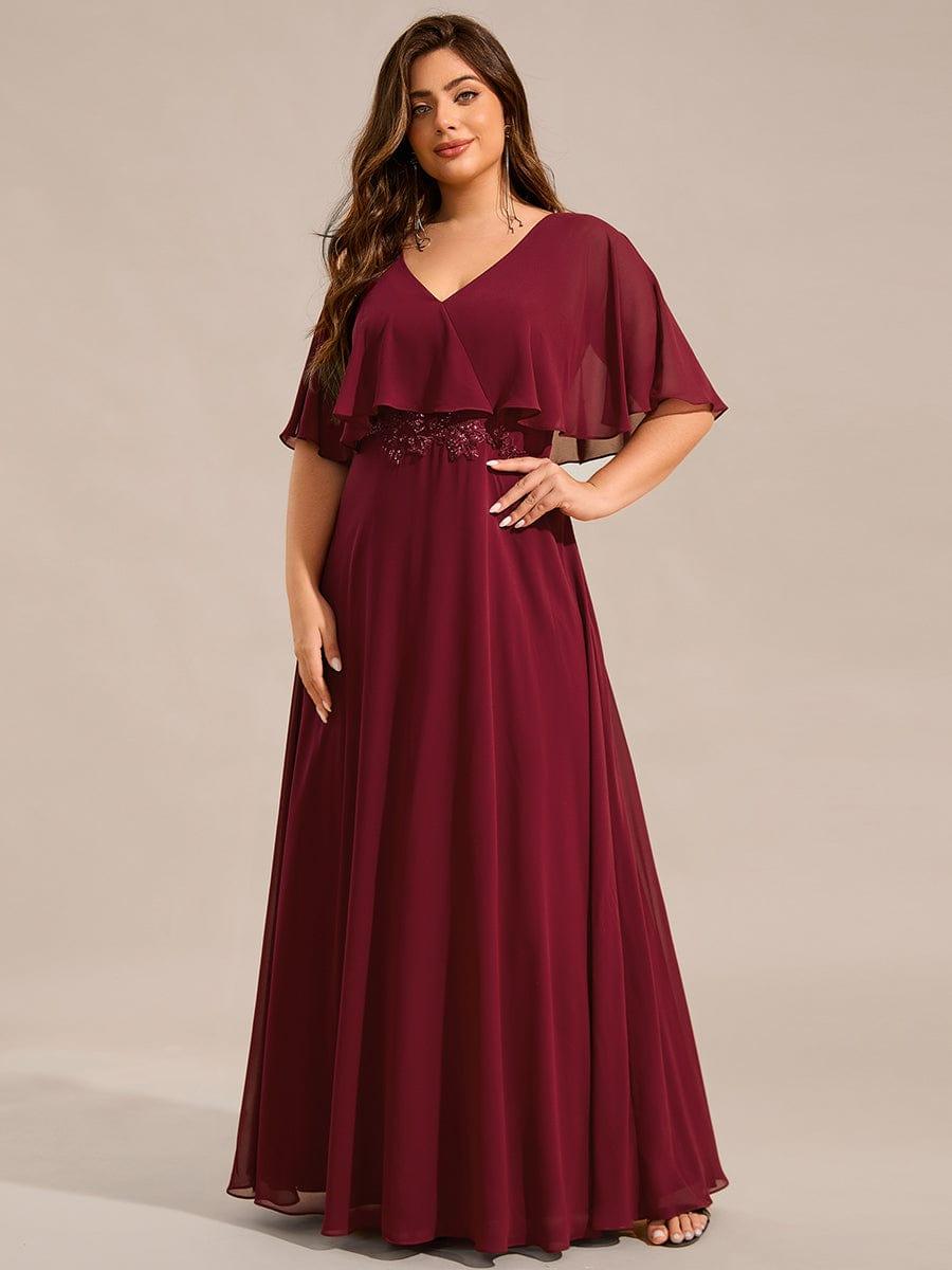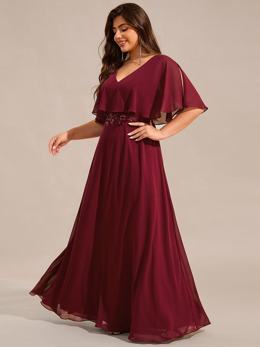 A-Line Plus Size Empire-Waist Chiffon Formal Dress with Half Sleeves
