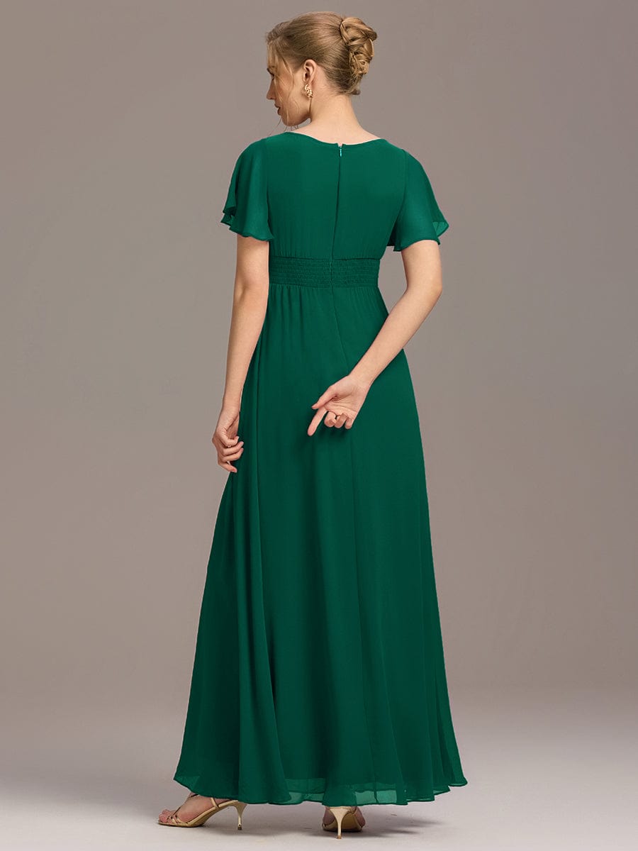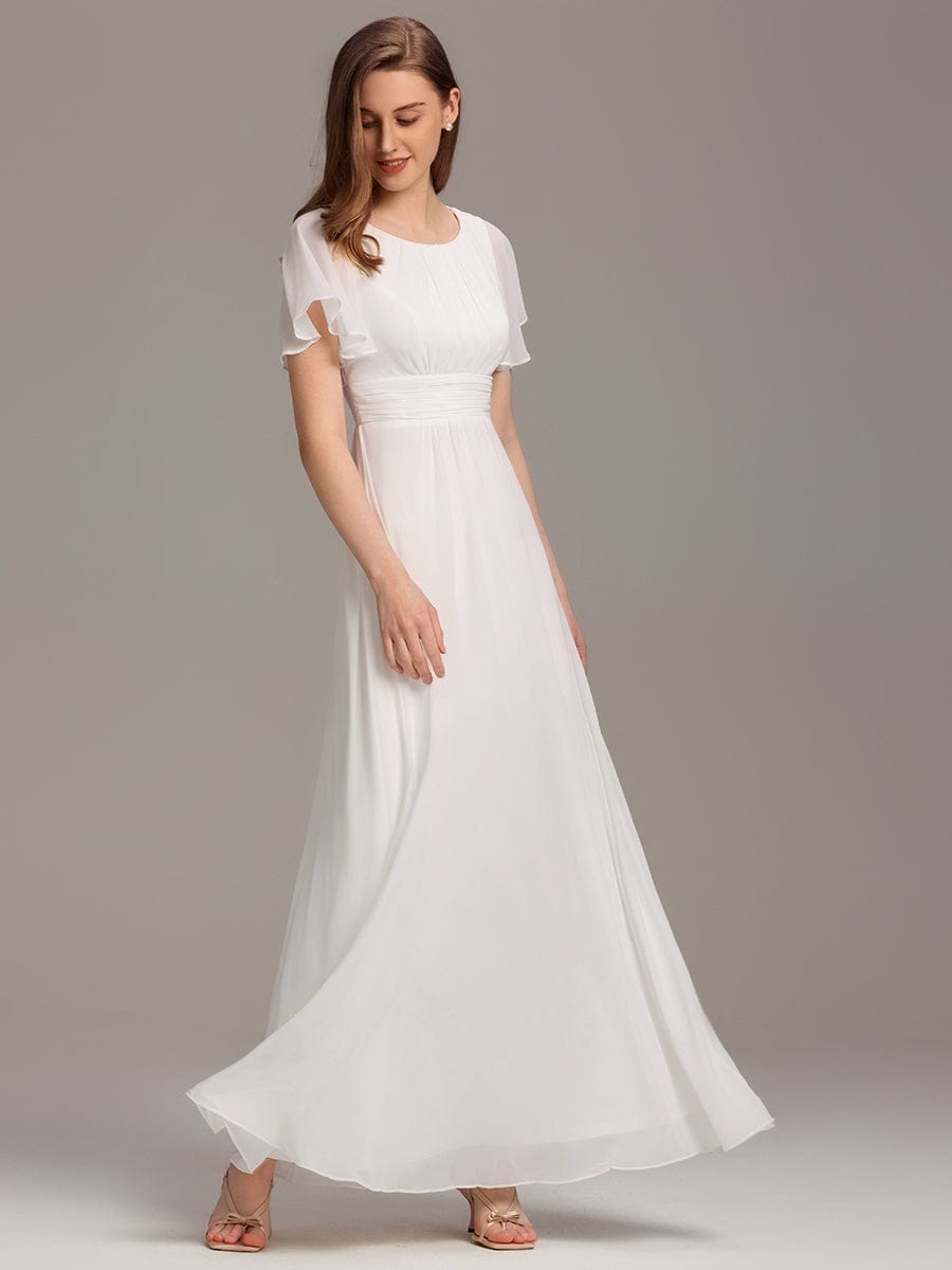 A-Line Simple Chiffon Scoop Neck Pleated Empire-Waist Bridesmaid Dress