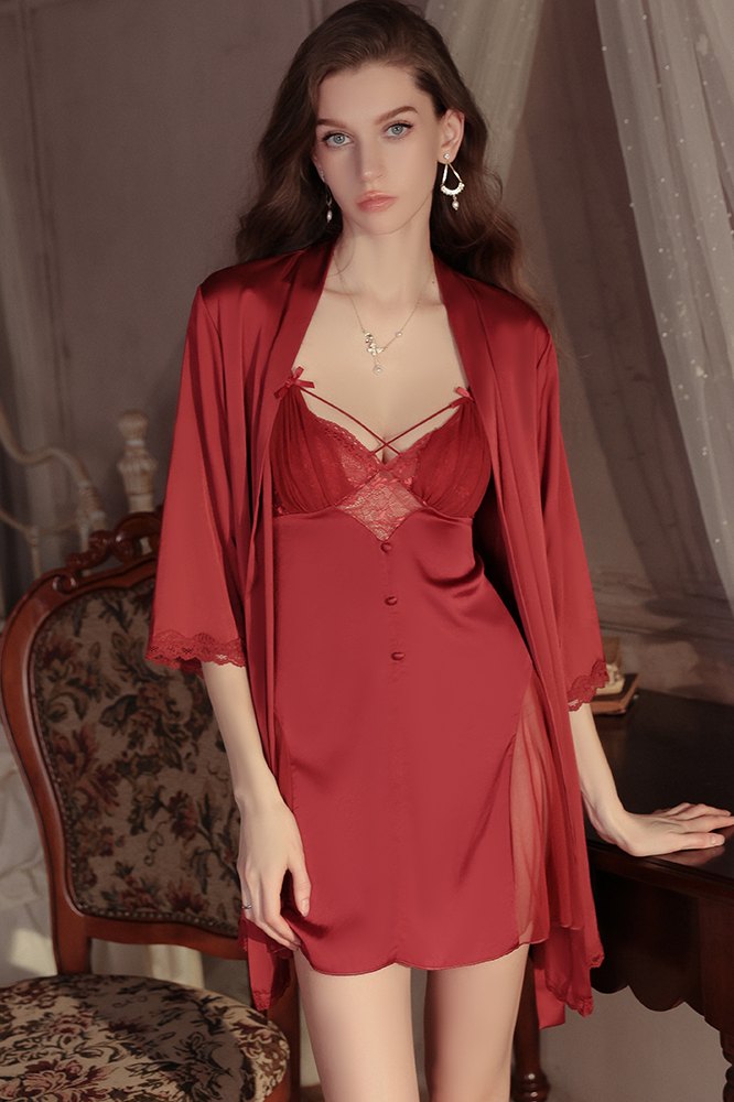 Sexy Double Straps V-Neck Sheer Short Nightgown and Robe Set